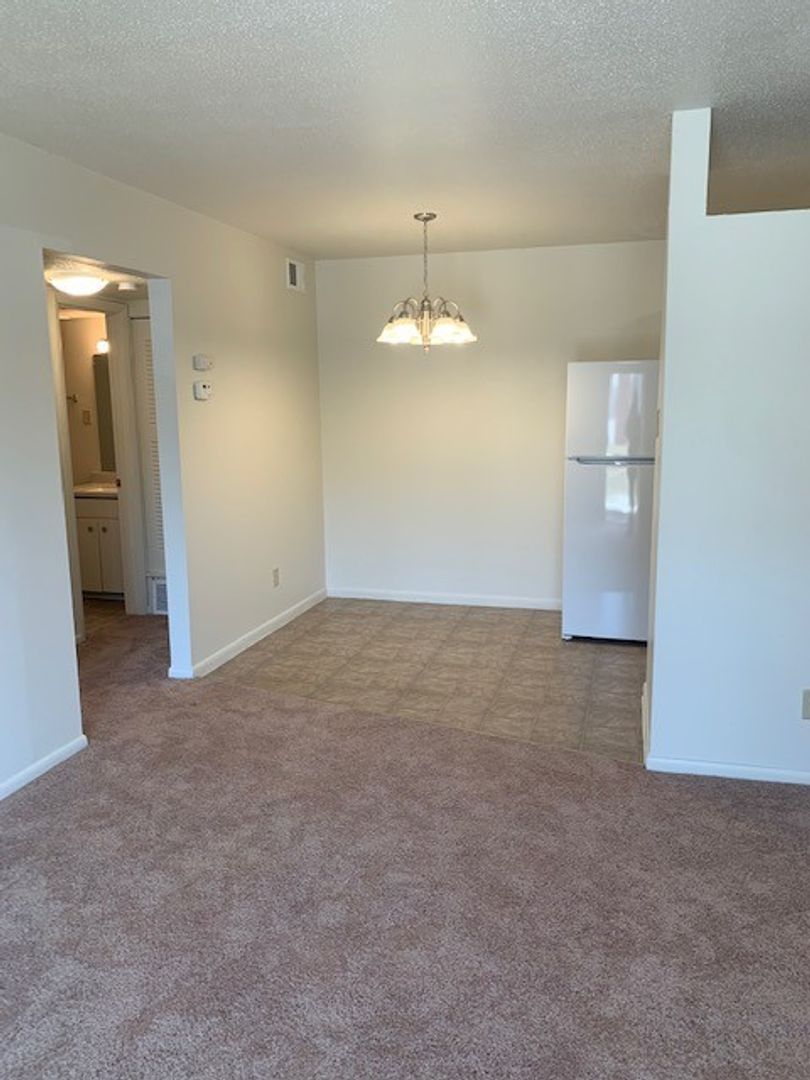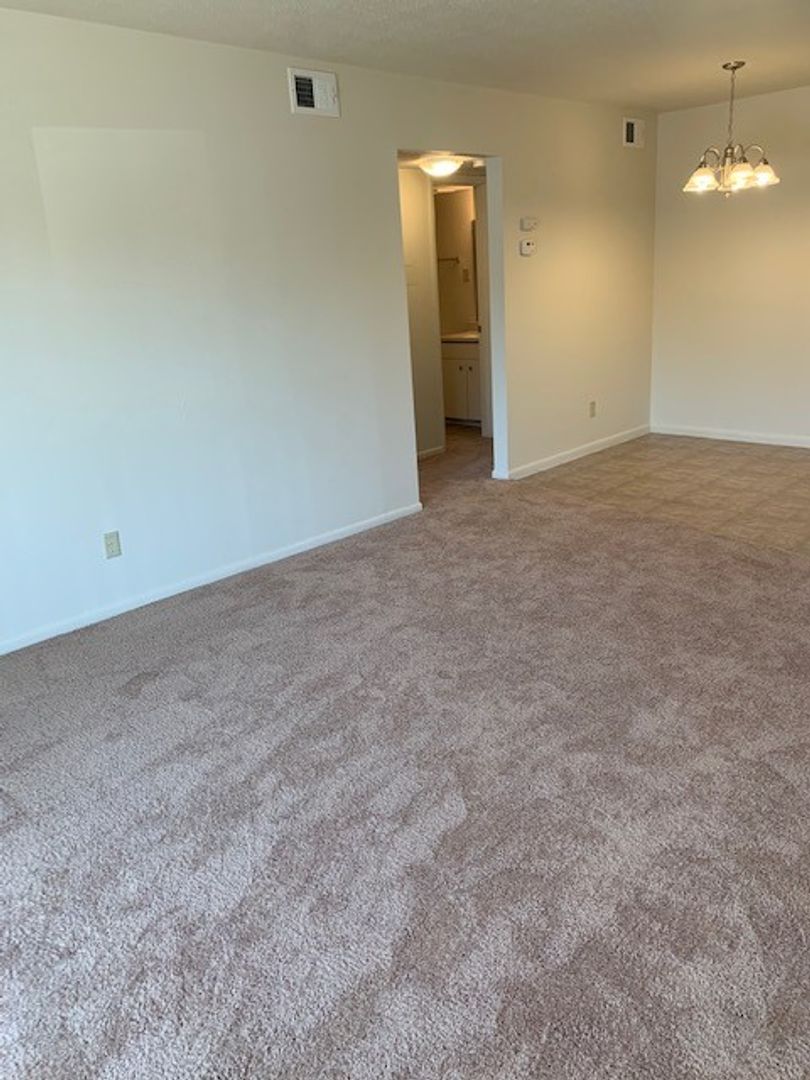 Enter your new apartment home through the living room with steam cleaned lush carpeting and crisp, white walls. Your living room opens up to the dining room, creating a warm, connected feel. Our 1 bedroom apartments feature a spacious bedroom with a walk in closet. Our 2 bedroom apartments feature a spacious master bedroom with a large closet and a second bedroom with closet attached.