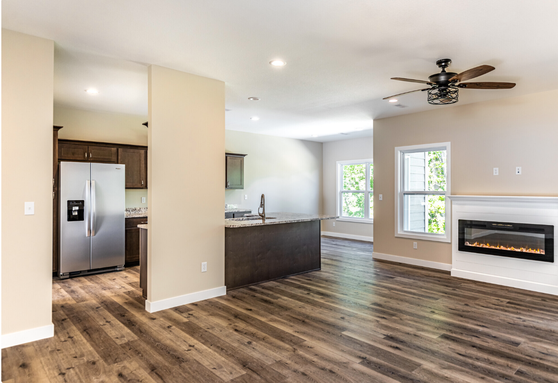 Our Brand New 2 Bedroom 2 Bath Luxury Cottage is available in Boonville's newest community, Boone's Pointe. Located just off of Ashley Rd and adjacent to peaceful Rolling Hills Park. Your luxury cottage is complete with an indoor and outdoor fireplace, outdoor patio area, attached garage, laundry washer and dryer in your laundry room (with smart lights upon entry), luxury kitchen finishes such as stone countertops, stainless steel appliances, and more!